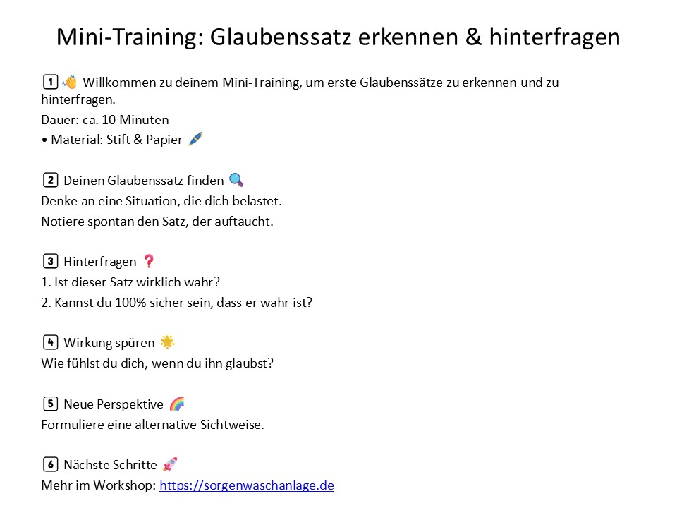 Menü Home Über mich Kontakt und Literatur Methodik Downloads Downloads Sorgen raus, Freude rein – kostenlose Impulse für dein inneres Strahlen Ein Vorgeschmack auf deine eigene Erfahrung in der Sorgenwaschanlage Kostenlos reinschauen! Dein erster Schritt zu innerer Freiheit – Mini-Übung The Work Download Die liegende 8 – Stressabbau in 2 Minuten Download